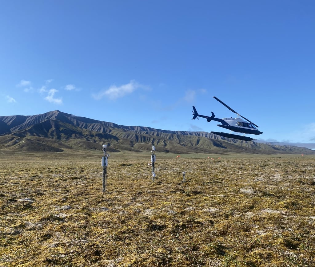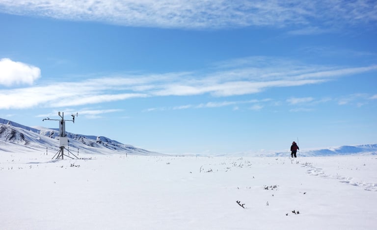 In 2024, instruments were deployed in the Qarlikturvik Valley on Bylot Island to study the components of the surface energy balance in shrub-dominated environments.