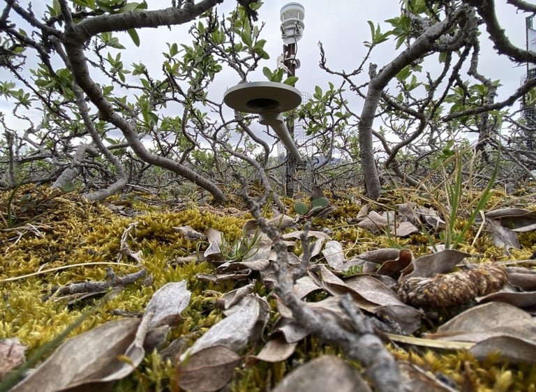 Net radiometer installed beneath shrubs