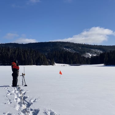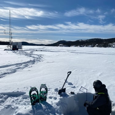 My master’s project focuses on monitoring and modeling lake and reservoir ice in cold regions. Using custom-built, low-cost temperature profilers deployed on two northern lakes and one hydroelectric reservoir in Quebec, we record continuous temperature profiles throughout the ice season. These data, complemented by manual drilling and sonar measurements, provide a detailed view of ice formation, growth, and melt. By comparing field observations with simulations from the Canadian Small Lake Model (CSLM), this research aims to improve the representation of ice and snow processes in lake model.