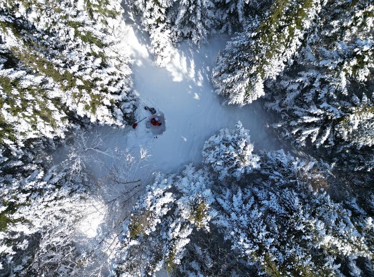 Dmitry Pershin au sein d'un puits de neige à la Forêt Montmorency - Hiver 2024 (crédit photo : Pierre-Erik Isabelle et Emmanuelle Barrette)